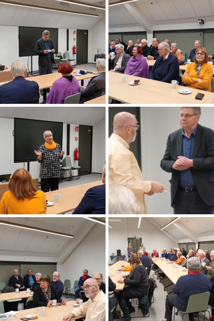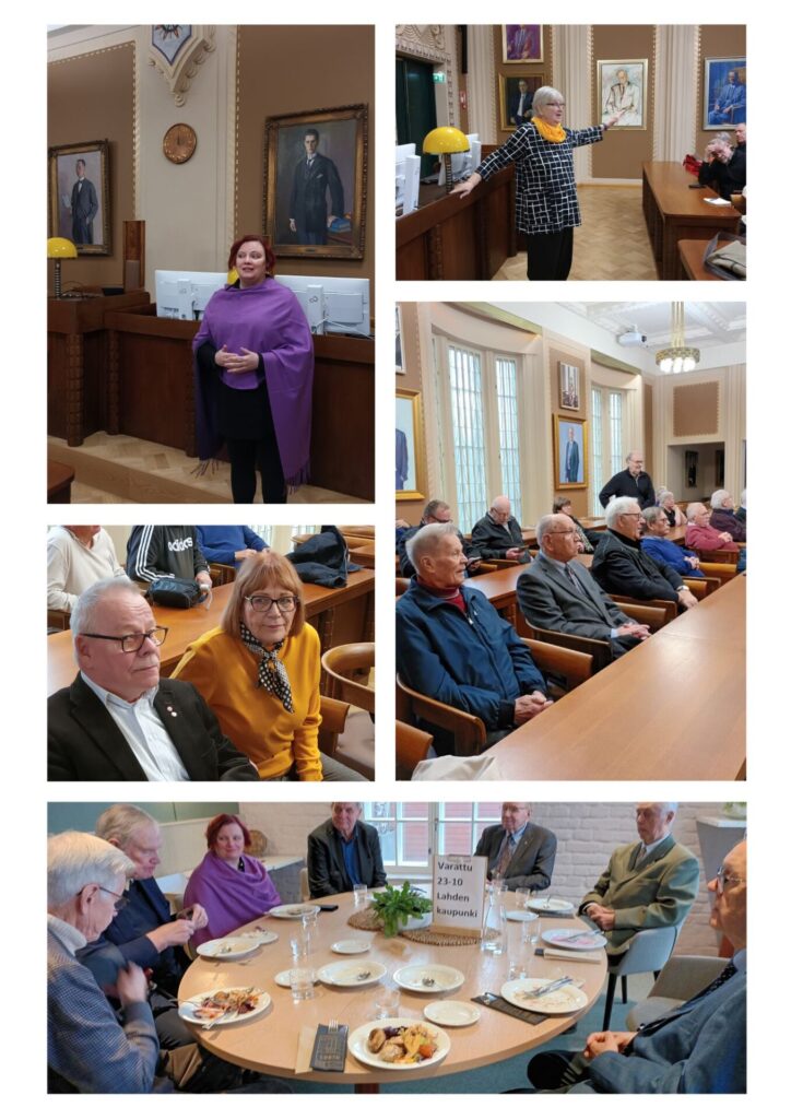Kollaasi 2. Kuva 1. Sirkku Hilden pitää Lahden kaupungin puheenvuoroa. Kuva 2. Helli Jalas esittelee valtuustosalin arkkitehtuuria. Kuva 3. Tapahtuman kuvaaja ja Lahden seudun Wanha Toveri Vesa Tuominen Ulla Vaaran kera seuraavat valtuustosalin ohjelmaa. Kuva 4. Toverinäkymää valtuustosalista. Kuva 5. Pyöreän pöydän lounas Sibeliustalossa. Kuvassa vasemmalta lukien Kari Salmi, Paavo Lipponen, Sirkku Hilden, Reijo Päivärinta, […]