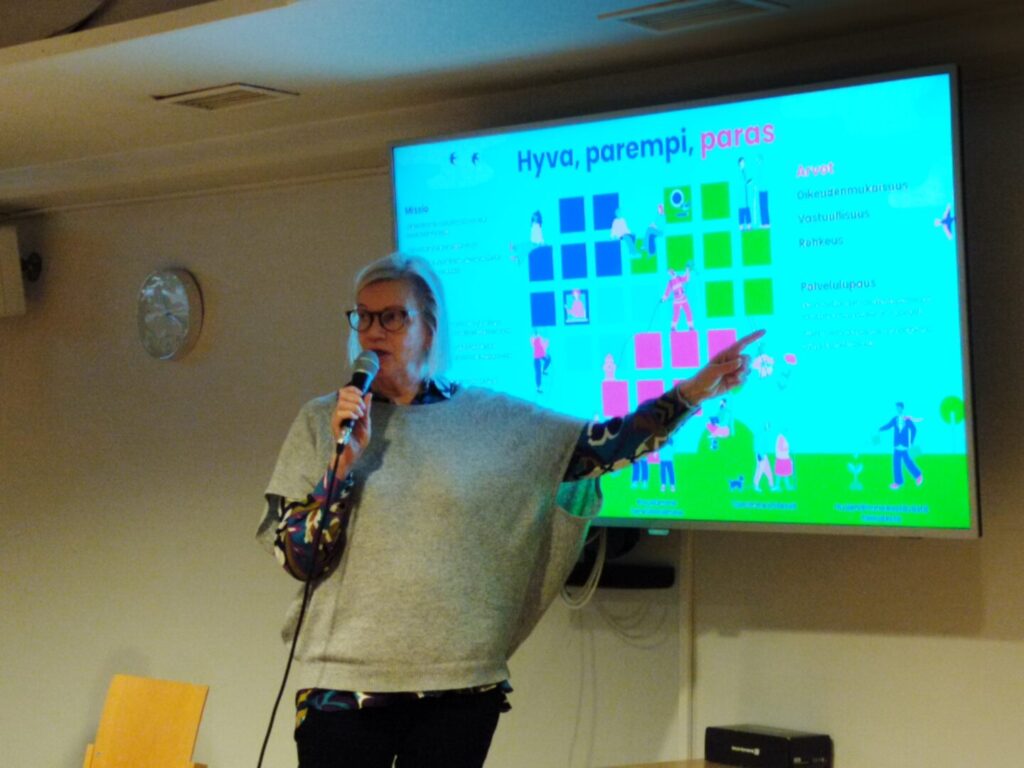 Vantaan ja Keravan hyvinvointialueen ja HUS:n hallitusten jäsen Pirkko Letto kertoi kerhossamme siitä työstä, mitä tehdään hyvinvointialueemme kehittämiseksi. Tiukka talous asettaa omat raaminsa, mutta paljon on silti saatu aikaan. Eräs myönteisimmistä kehityksistä on saavutettu henkilöstön puolella. Vuokralääkäri- ja -hoitajapohjaisesta tilanteesta on päästy omaan motivoituneeseen henkilöstöön, joka myös näyttää pysyvän. Työtä on tehty niin työympäristön kuin