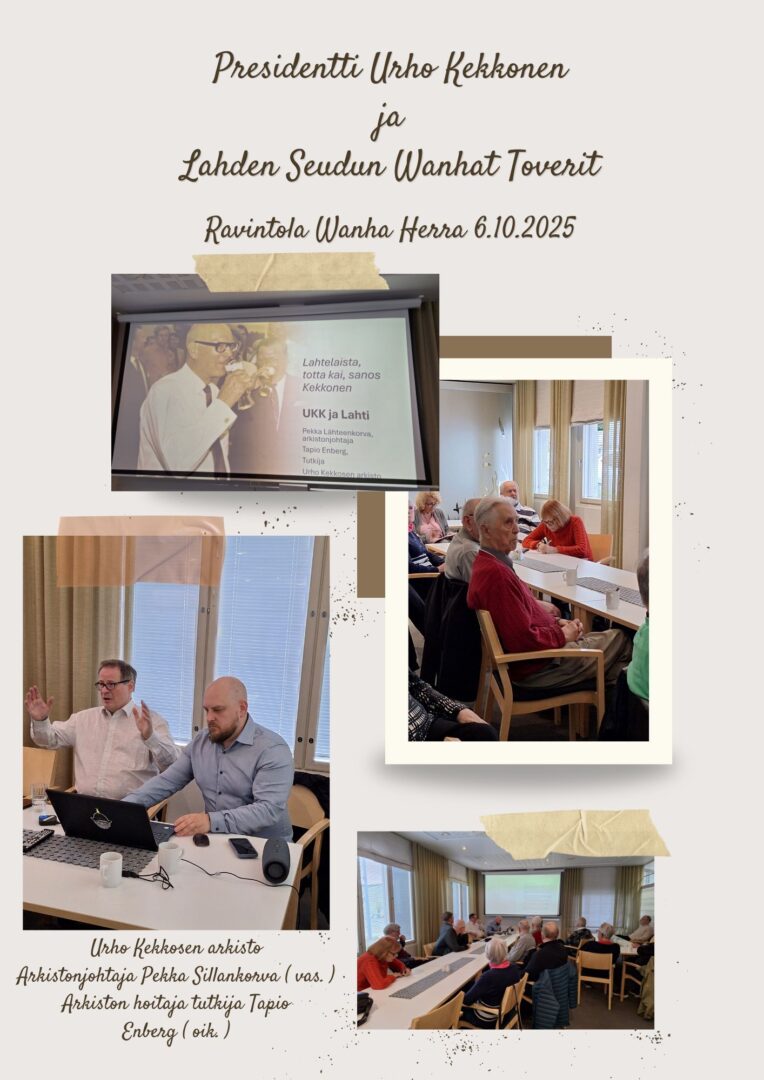 Urho Kekkosen arkistonjohtaja Pekka Lähteenkorva ja arkiston tutkija Tapio Enberg vierailivat Lahden seudun wanhojen Toverien tapaamisessa maanantaina 6.10.2025.