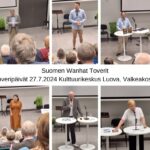 Lauantaina 27.7.2024 kokoontui Valkeakosken Kulttuurikeskus Luovan Rydman-saliin Suomen Wanhojen Toverien Toveripäiville 130 toveria ympäri Suomen, ja Lahdestakin oli muutama jäsen paikalla. Maittavan kalakeittoluonaan, ja näyttelijä Ahti Jokisen musiikillisen työväenlauluosuuden jälkeen tilaisuuden avasi Suomen Wanhojen Toverien puheenjohtaja Reijo Päivärinta. Ja päivän vieraat, ”Kova Koivisto” Dosetti Tapio Bergholm, Valkeakosken Työväen Musiikkitapahtuman tervehdys Toiminnanjohtaja Marianne Haapoja, SDP:n Pääsihteeri Mikkel Näkkäläjärvi, Presidentti Tarja Halonen ja Euroopan parlamentin jäsen Eero Heinäluoma. Estyneenä Maria Guzenina flunssan takia. Varmaan tiedättekin mitkä asiat Suomessa ja maailmalla keskusteluttaa. Ja keskustelua, ja kysymyksiä riitti jonoksi asti. Minkä purkamiseen aikataulukiakin jouduttiin ylittämään.
