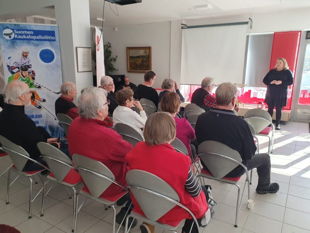 Kuvatekstit: Lappeenrannan Wanhojen Tovereiden kerhokokouksessa esittäytyivät kansanedustajaehdokkaat Suan Kymäläinen ja Jussi Tauriainen. Valokuvat Raimo Paalanen.