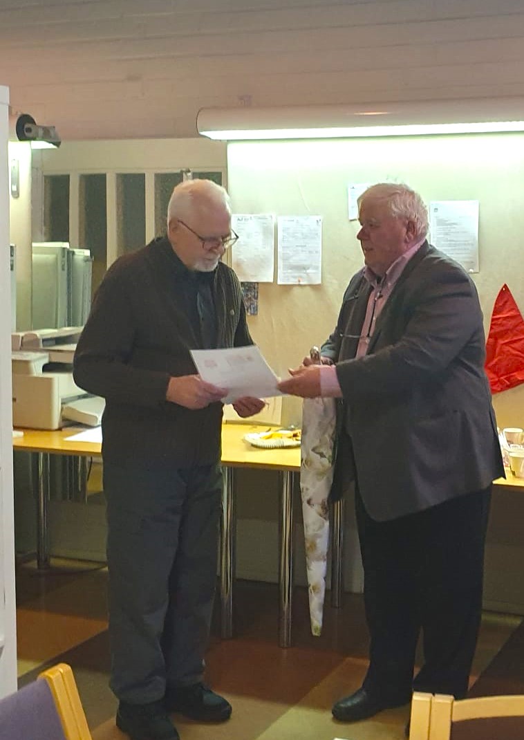 Akaan Wanhat Toverit muisti vuosikokouksessa punaisella ruusulla Matti Hautamäkeä aktiivisesta toiminnasta. Matti on toiminut yhdistyksen ensimmäisestä toimintavuodesta 2010 lähtien yhdistyksen sihteerinä vuoteen 2022 asti ja hallituksen jäsenenä 2023.
